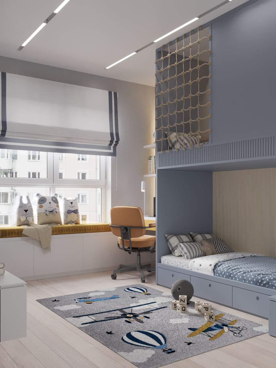 Проект интерьера для маленького путешественника создан с учетом исследовательского и любознательного характера ребенка. Это место, где он сможет мечтать, учиться и развиваться, вдохновленный обширным миром за пределами своей комнаты.